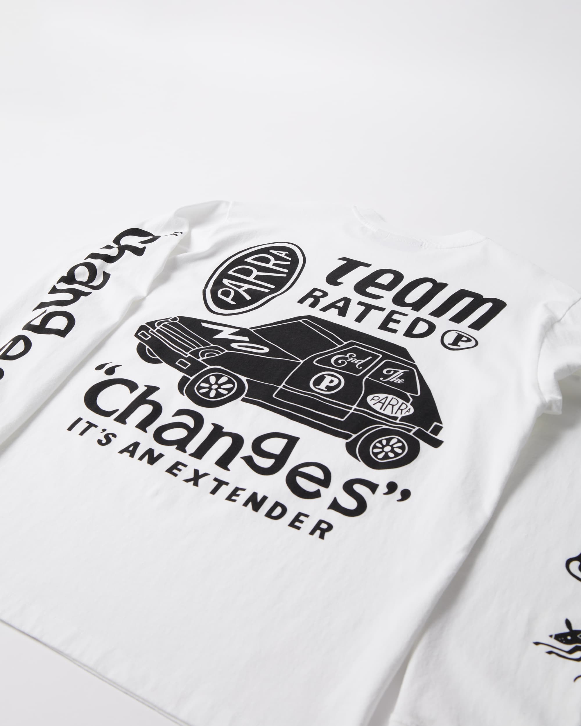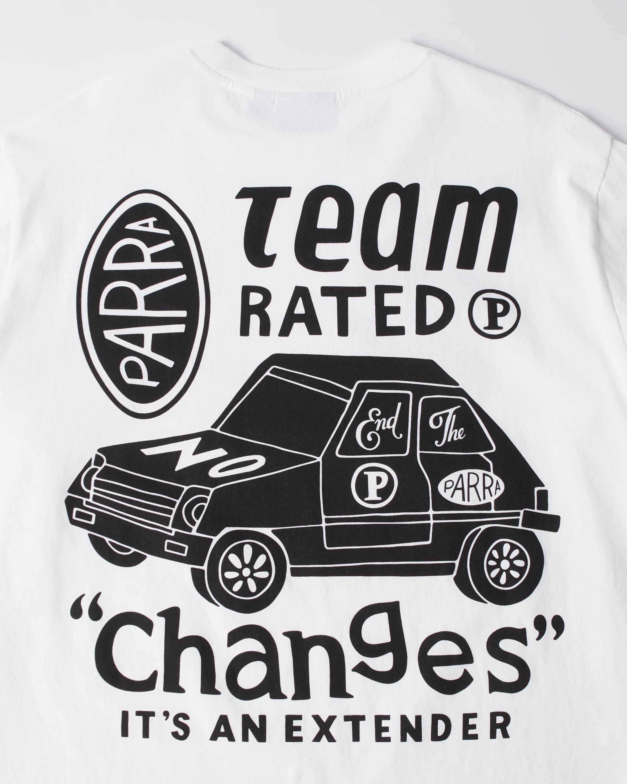 Estampado integral con la imagen “Cambios de equipo”. Todas las camisetas de Parra tienen un corte cuadrado personalizado.