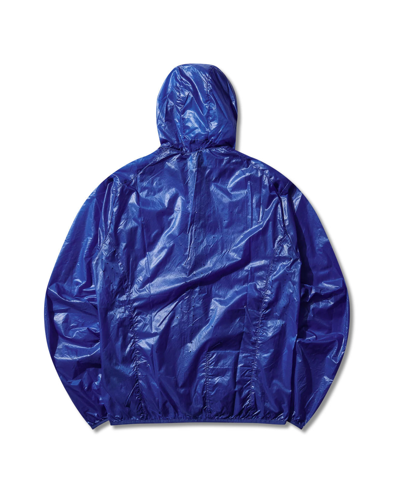 La chaqueta cortavientos plegable Hue es ligera y con capucha en color azul. Fabricada en nailon microdesgarro ultraligero 10D, ofrece protección contra el viento y repelencia al agua. Cuenta con zonas de ventilación grabadas con láser en la espalda, los laterales y la parte delantera para mayor transpirabilidad. Su corte ajustado incluye una cremallera central y dos bolsillos laterales. Es plegable para guardarla y transportarla fácilmente. Luce un logo bordado en el hombro izquierdo.